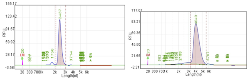 1、加帽率数据:分别对2K 和4K的片段参照说明书进行操作,使用LC-MS对2K的序列进行加帽率检测,加帽率都在99%以上。